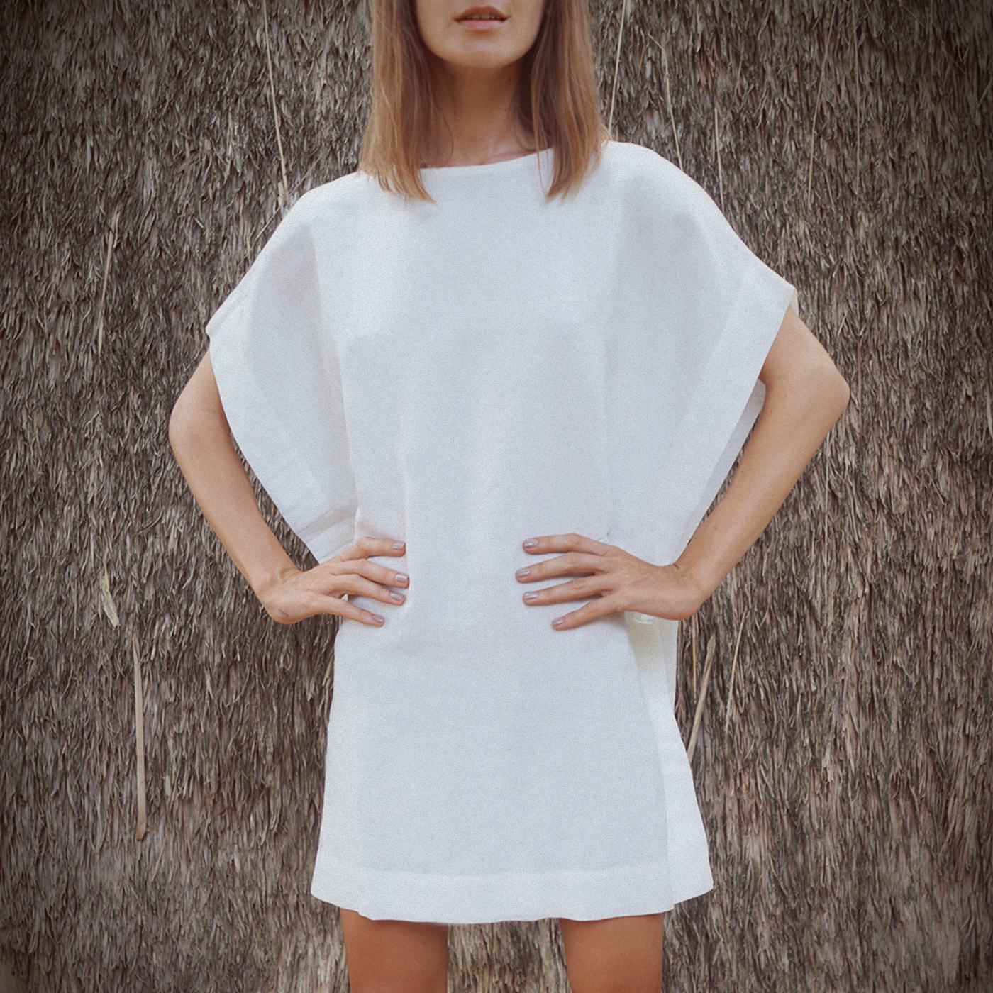 Slick summer poncho. Airy, loose fitting tunic with boat neck and hidden pockets. Great as poolside cover up.